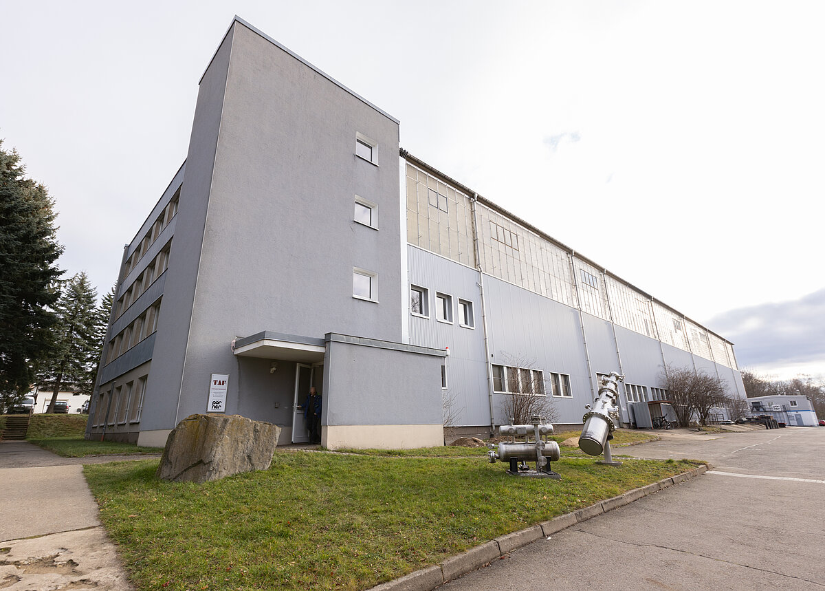 - Der Straße folgen. Nach einer Linkskurve ist das Gebäude am TAF-Firmenlogo erkennbar