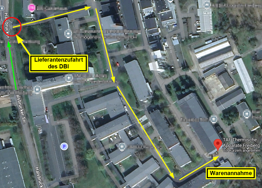 Hinweis: Auf dem DBI-Gelände befinden sich mehrere Unternehmen mit identischer Adresse. Bitte beachten Sie daher die folgenden Orientierungshinweise auf dem Gelände.