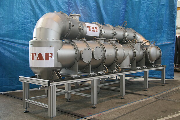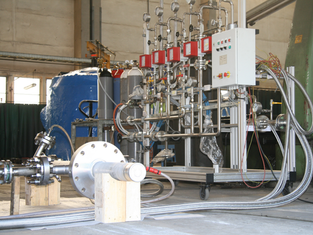 Teststand für Forschungseinrichtung bestehend aus gekühlten, doppelwandigen Einzelsegmenten